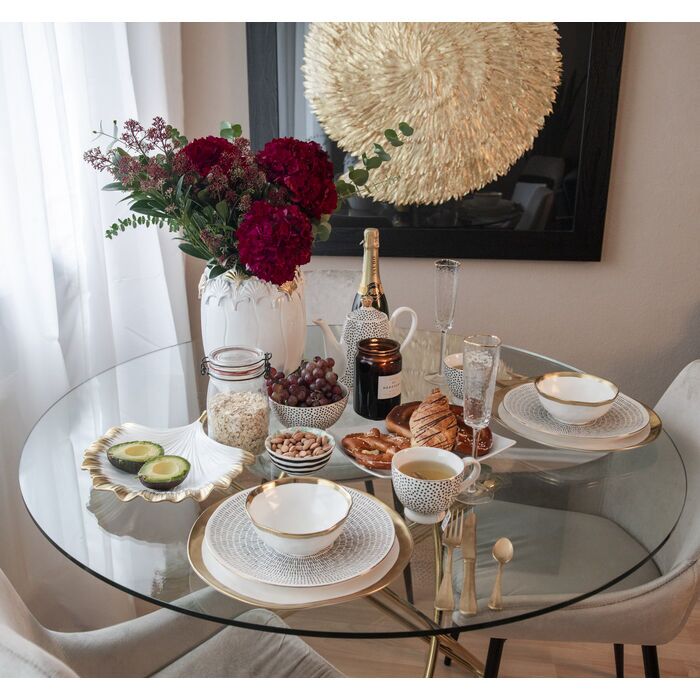 Denna porslinskål har en särskilt positiv utstrålning. Fläktformen av strålande vitt porslin med guld liknar ett ginkgo -blad, som i Asien är en symbol för kärlek och vänskap. En riktig skönhet! Platt, vit porslinsskål i form av ett ginkgo -blad med en gyllene höjdpunkt Den eleganta glamourlooken som sätter en vacker höjdpunkt på skänk eller bord. Praktiskt: skålen kan diskas i diskmaskin Ett mycket symboliskt inredningstillbehör som ser bra ut även utan innehåll, eftersom ginkgo -blad ger tur En vacker dekorativ skål i badrummet också: till exempel ihoprullade gästhanddukar och sminkbitar Lycka är en riktig present – därför är denna skål en underbar souvenir med symbolisk karaktär