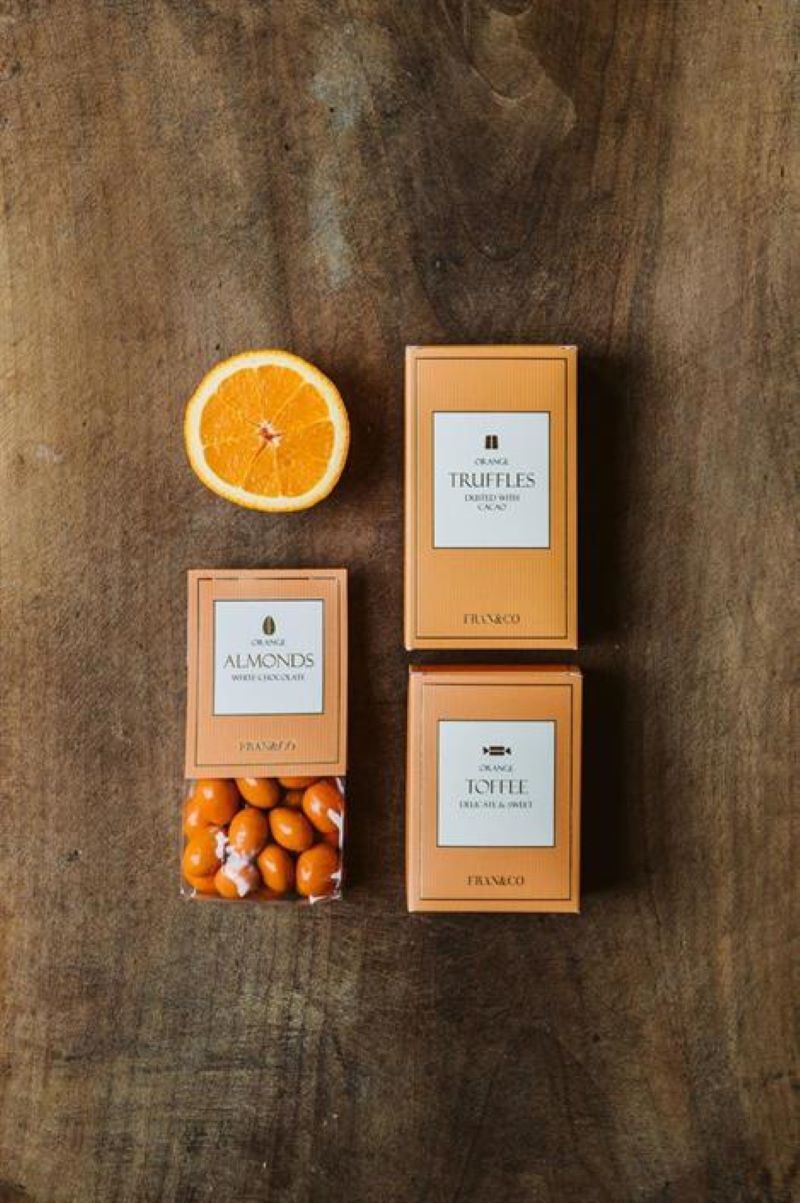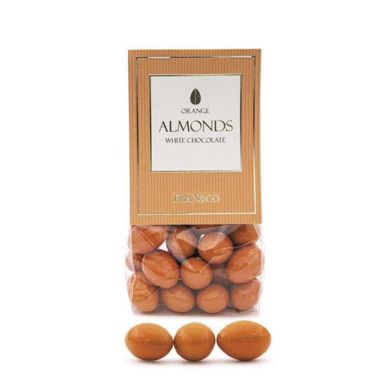 Ingredienser: Ingredienser: Socker, mandel (20 %), kakaosmör, helmjölkspulver, kakaomassa, apelsinpulver, vasslepulver, laktos, emulgeringsmedel (sojalecitin), aprikos, apelsinarom, färgämne, paprikaextrakt, naturlig vaniljarom, ytbehandlingsmedel (E904), glukossirap, modifierad tapiokastärkelse, vegetabiliska oljor (kokos, raps) i varierande proportion. Mjölkchokladen & den vita chokladen innehåller min 30 % respektive 25 % kakaobeståndsdelar. Spår av hasselnöt, cashewnöt, paranöt & pekannöt kan förekomma..
