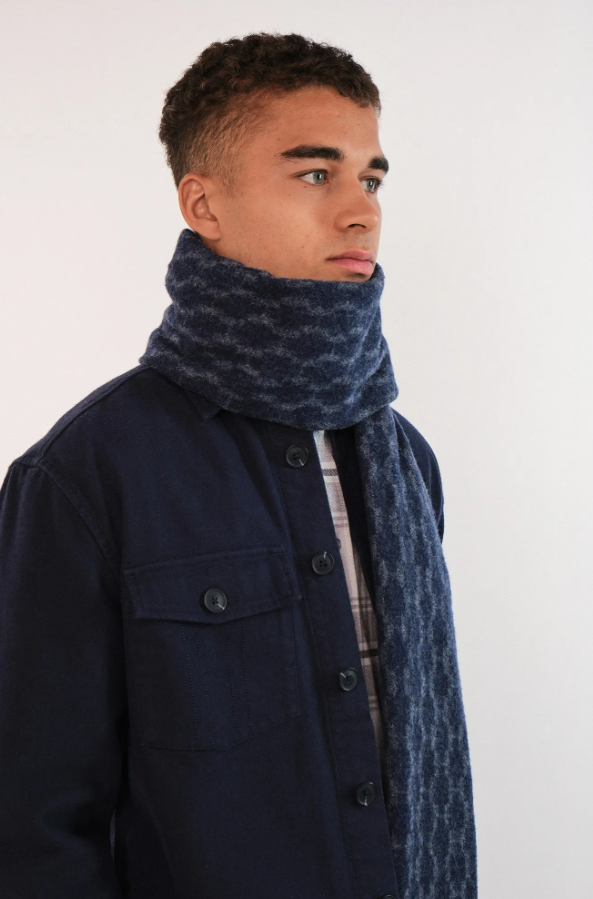Kim-halsduken är tillverkad av 100 % ull med fransade kanter och ett djärvt H-mönster över hela kroppen. Mjuk, varm och rikt texturerad, den är designad för både komfort och stil. En lyxig finish som lyfter vilken vinterlook som helst.