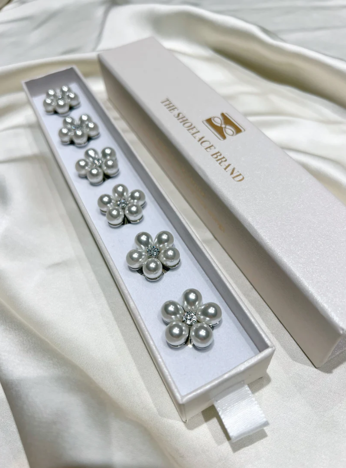 Knappsmycke – Rosi – Pearl Flower Button Charm Silver – 6 Pack