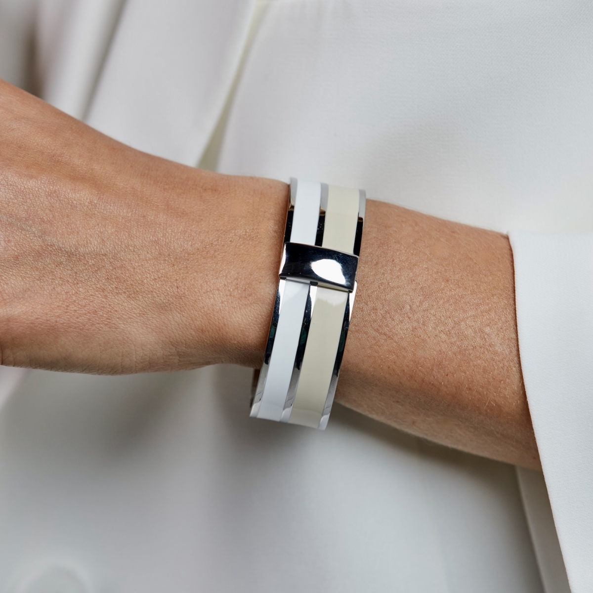 Armband – Studio Enamel Bangle White/Ivory/Silver