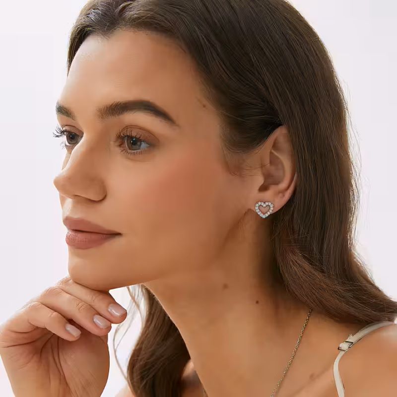 Ett par små hjärtformade örhängen dekorerade med stenar som ger ett fint och diskret skimmer. Den nätta storleken gör dem lätta att bära och enkla att matcha med andra smycken.