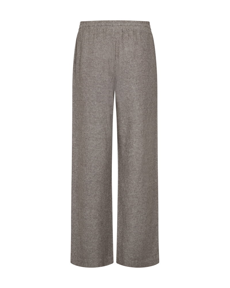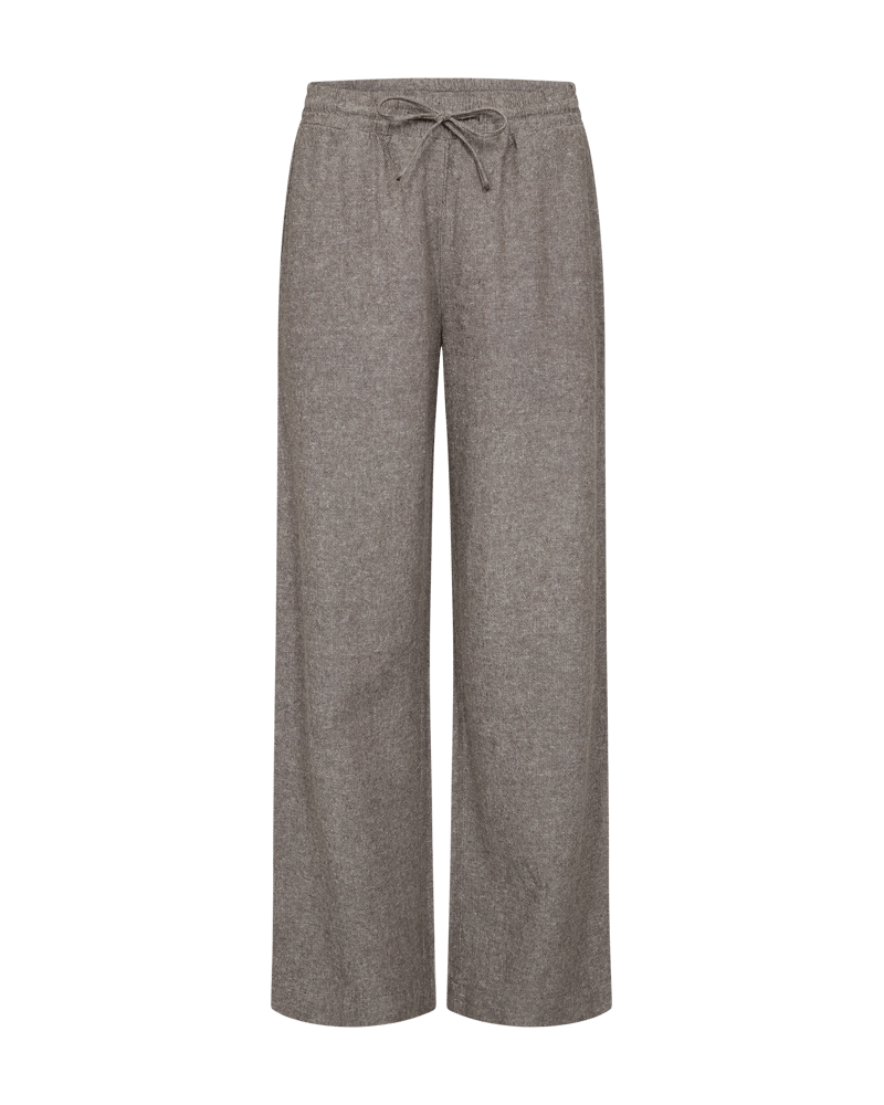 Byxor i ett lätt linnematerial. Byxorna har en enkel siluett med ett elastiskt midjeband med knytsnören, hög midja, sidfickor och en elegant, avslappnad passform.