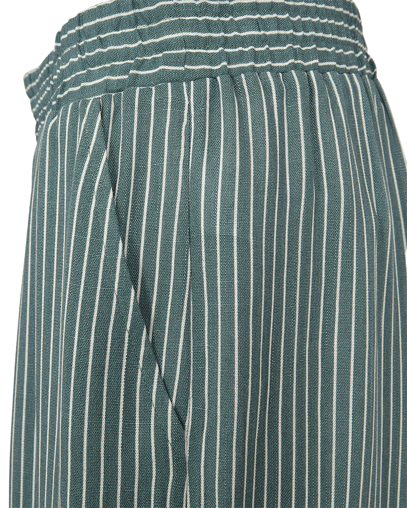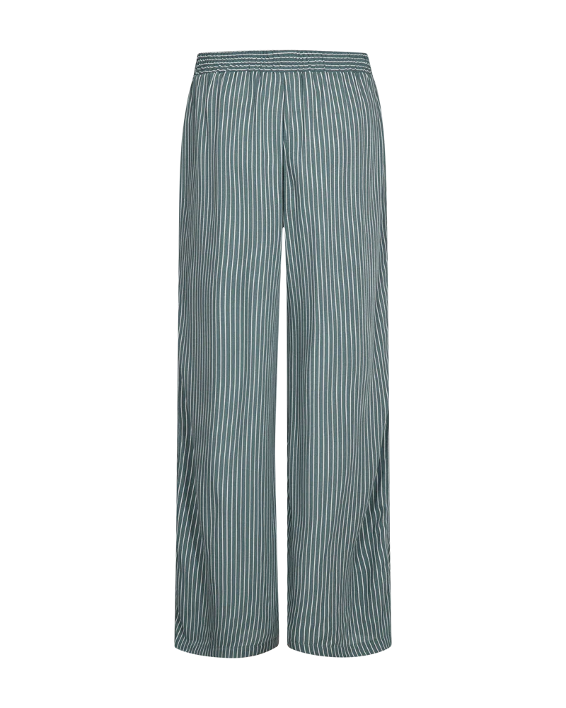 Byxor i ett mjukt material med ränder. Byxorna har en enkel silhuett med en bred resår i midjan, sidfickor och vida ben. Otrolig lyxig känsla.