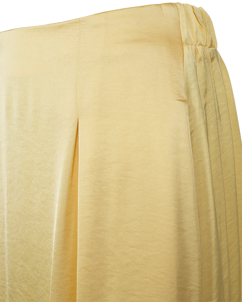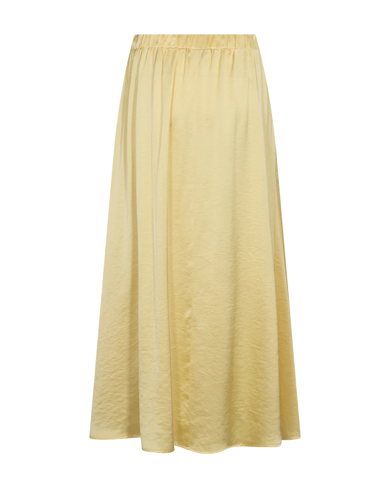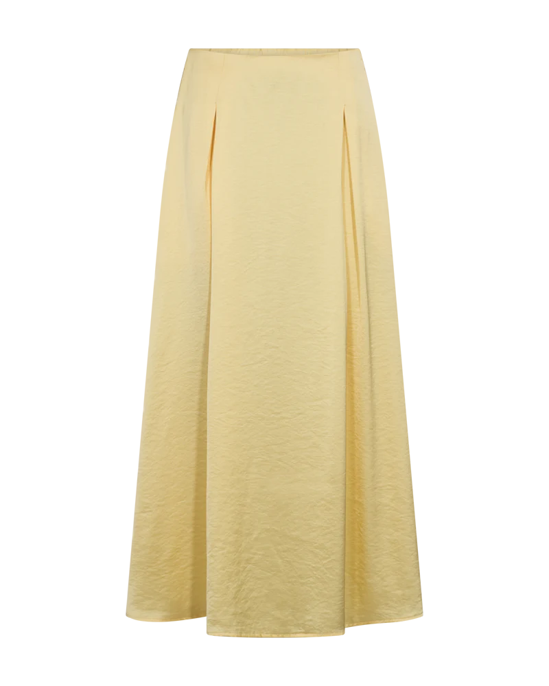 Kjolen har en enkel silhuett med resår i midjan, veck och en elegant A-form.