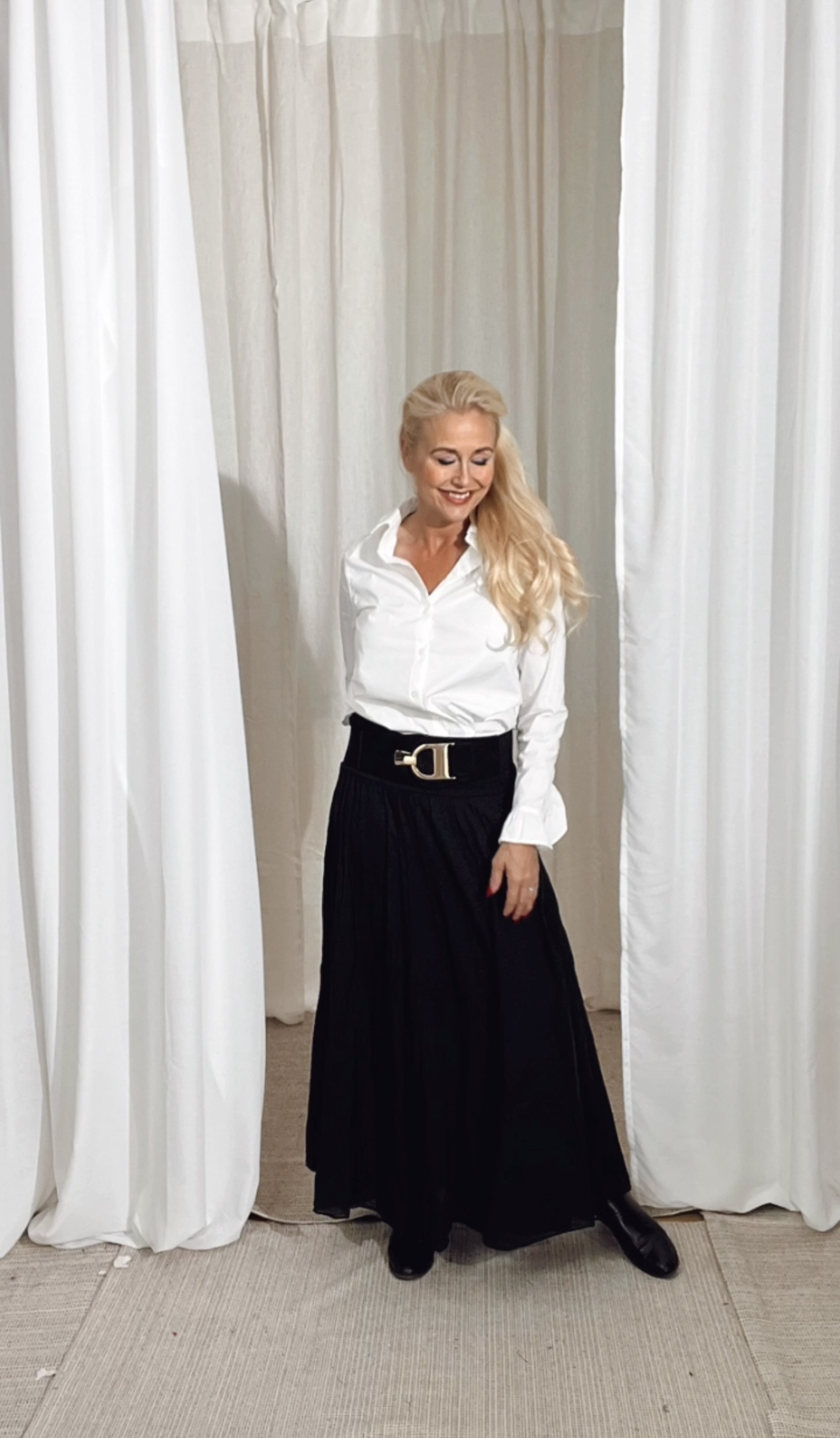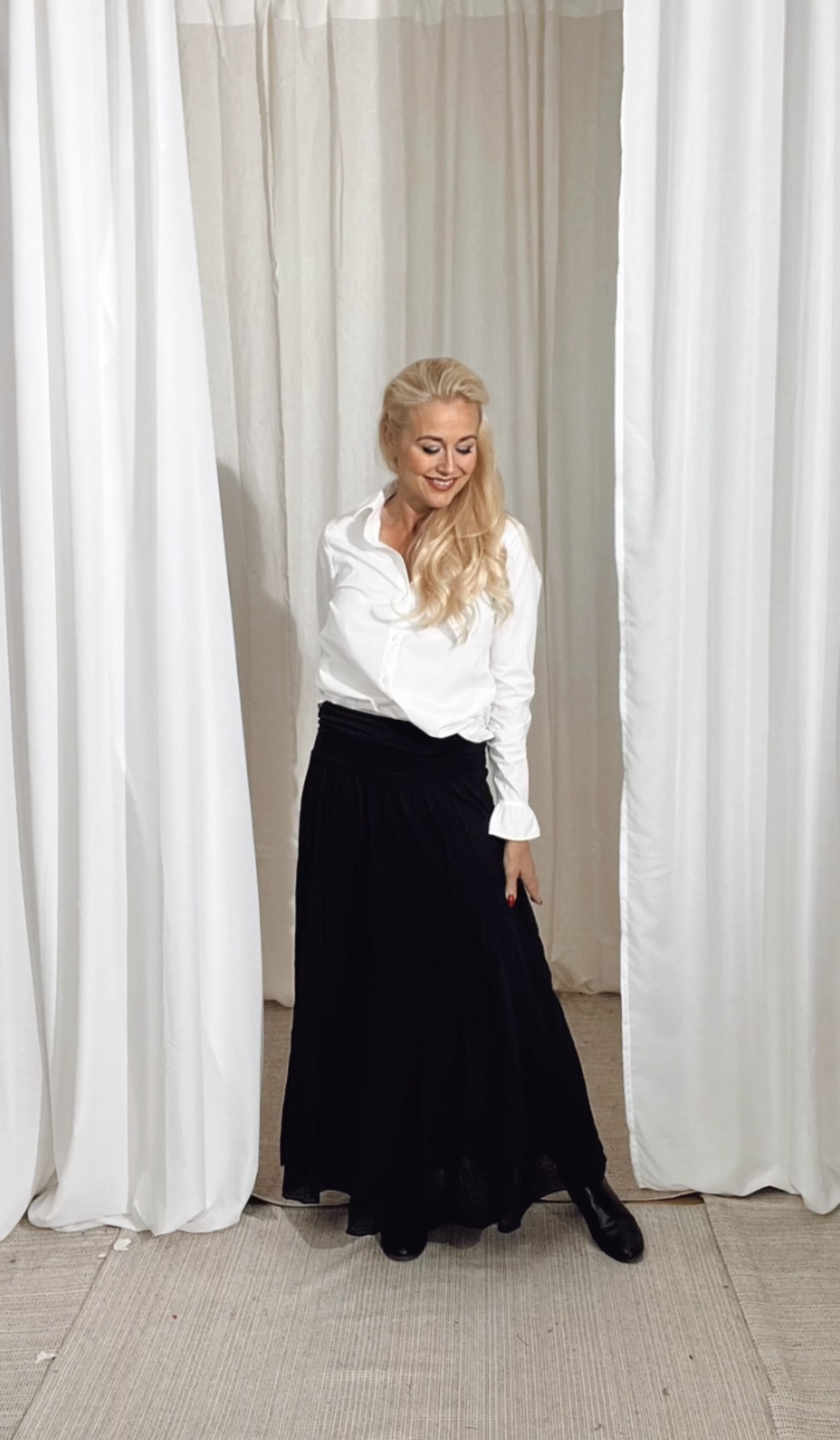 Långkjol i ett mjukt och fint material. Med ett bredare midjeband och ett fint fall.