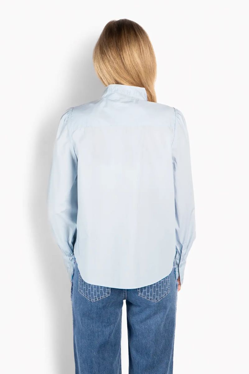 Mie-blusen är tillverkad av 100 % bomullspoplin, med mandarinfärgad krage och manschetter med subtilt H-broderi.