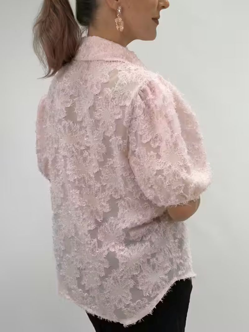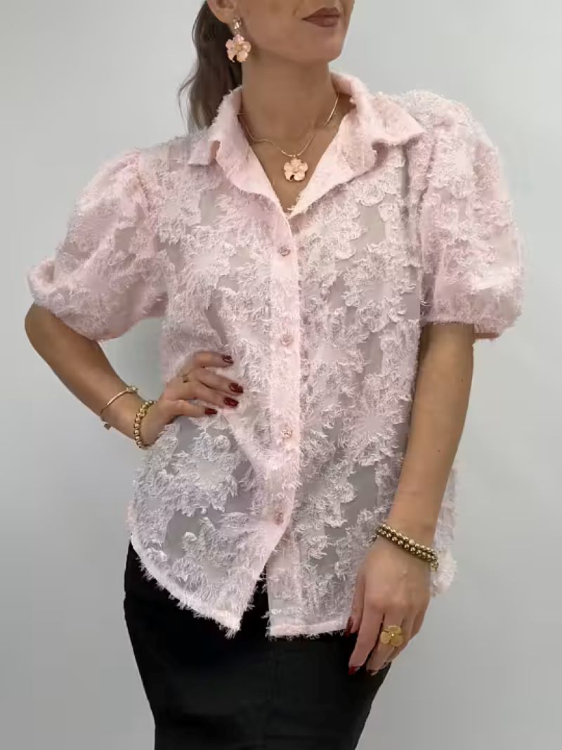 Lari är en unik blus med korta puffärmar och vackert strukturmönster som ger en exklusiv känsla. Den klassiska skjortkragen möter spännande textur – perfekt för dig som vill ha något extra utan att kompromissa med komfort.