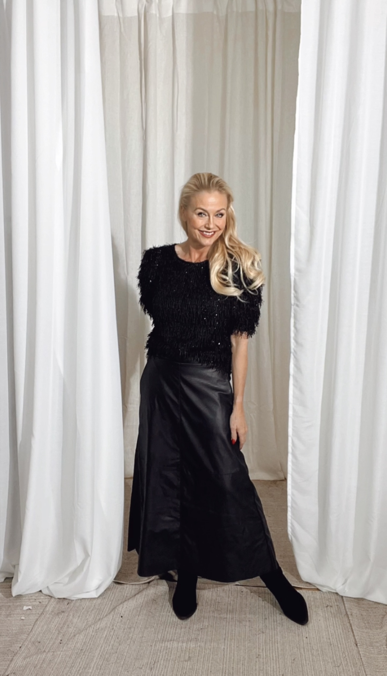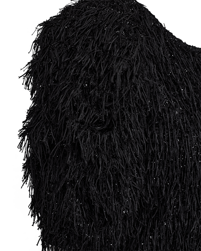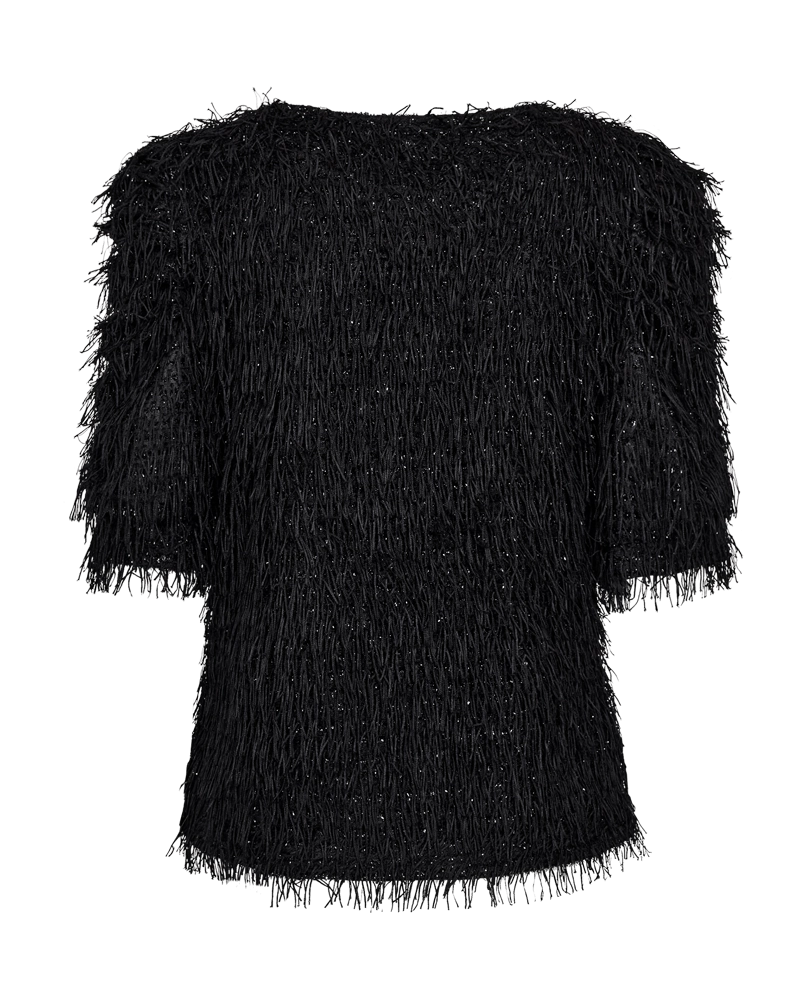 Blus i ett mjukt material med fina fransar och en vacker glittereffekt. Blusen har en enkel silhuett med ett mjukt jerseyfoder, halvärmar, rundad halsringning och en elegant, smal passform.