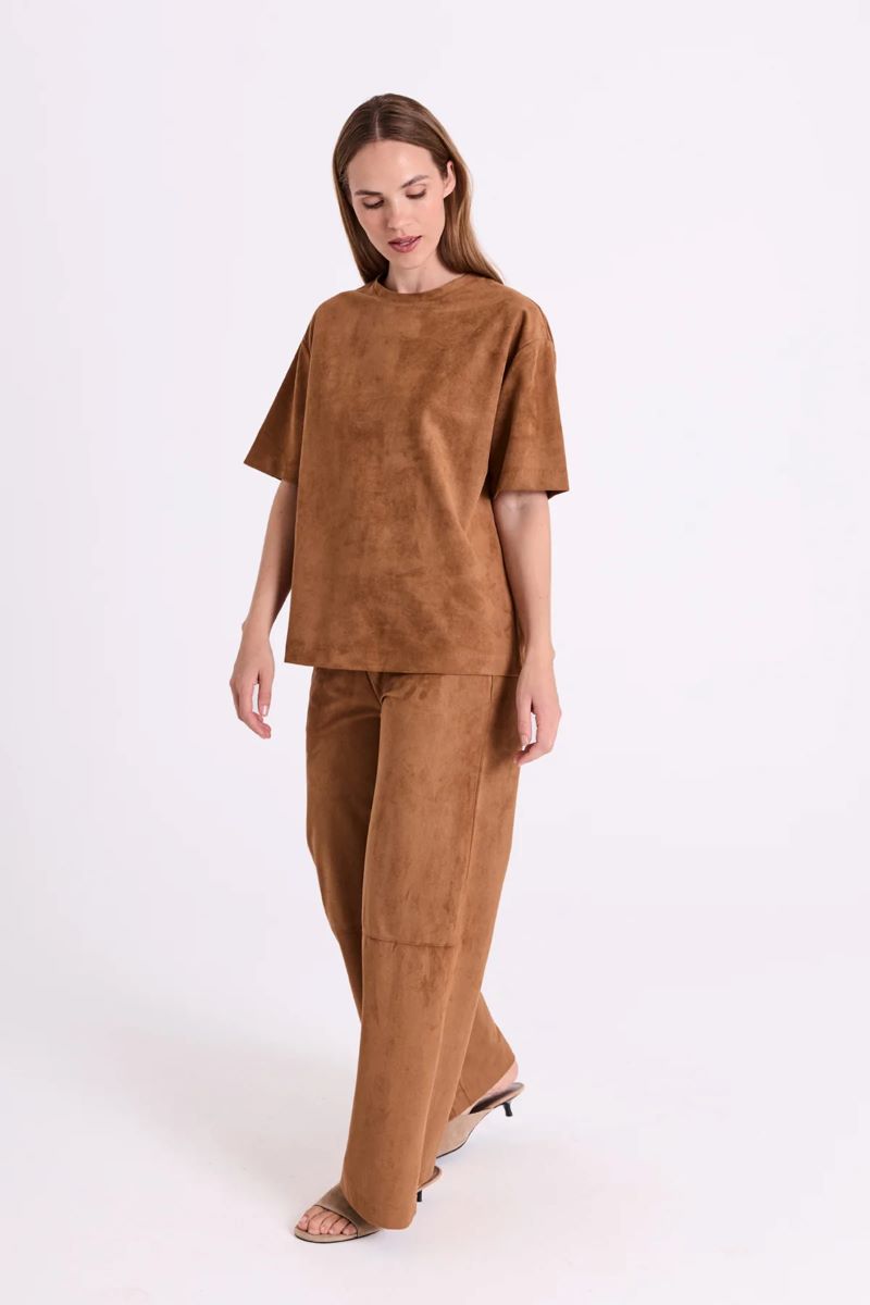 Blus från Freequent i ett mjukt och lyxigt mockaimitationsmaterial som ger en elegant look och en bekväm känsla. Blusen har en enkel silhuett med rundad halsringning och korta ärmar med nedsänkta axlar som framhäver den lösa passformen.