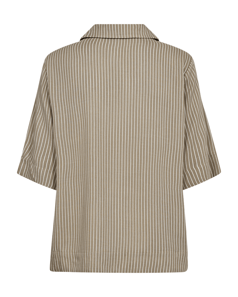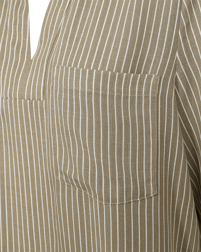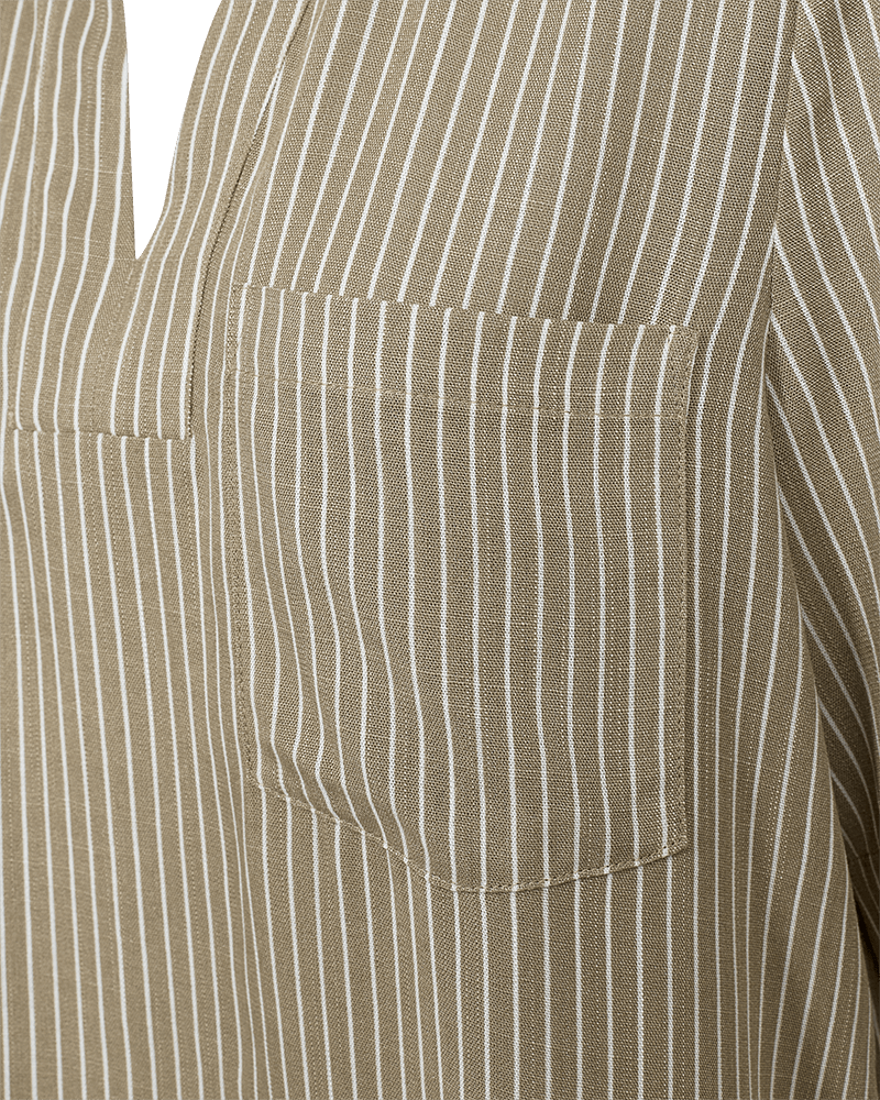 Blus i ett mjukt material. Blusen har en enkel silhuett med lös passform, v-ringning, vikt krage, halvärmar och en bröstficka.