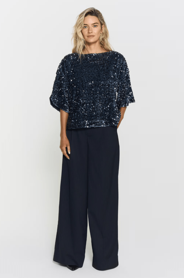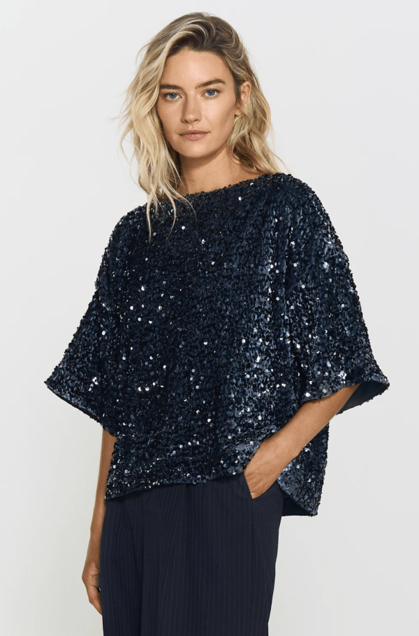 Gör ett fantastiskt uttalande i vår Zoka Sequin Top. Detta iögonfallande plagg har skimrande paljetter och en touch av glamour. Designad med en något överdriven kort ärm som ger en trendig touch.