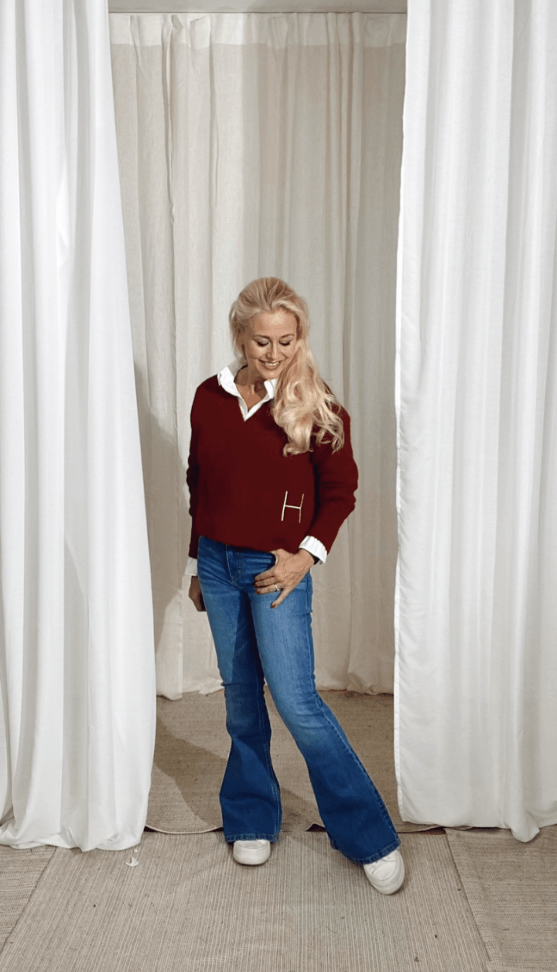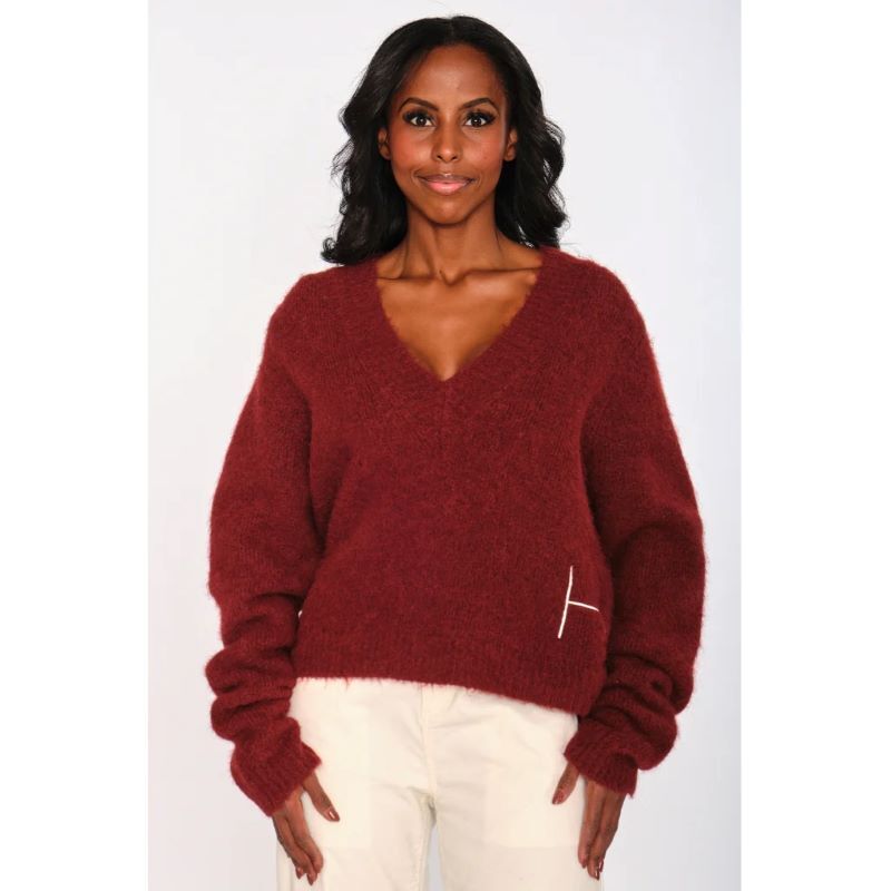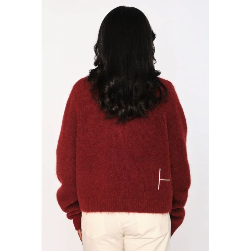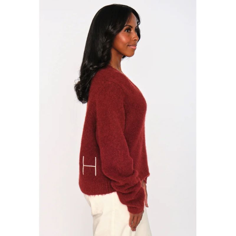 Pernille-tröjan har en mjuk V-ringning och raffinerade ribbade detaljer, avslutade med subtil H-broderi i fållen. Tillverkad av en mysig alpackaullblandning för värme och mjukhet. En tidlös stickning med en enkel, förhöjd känsla.