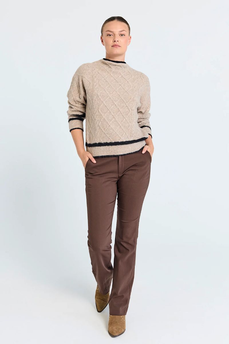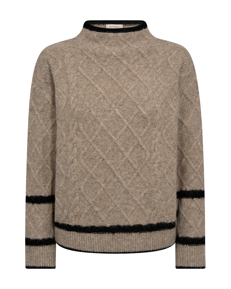 Tröja i ett mjukt, stickat material. Tröjan har en enkel silhuett med långa ärmar, breda ribbstickningar, hög halsringning samt det finaste kabelstickade mönstret. Detaljer som kombineras för en avslappnad look.