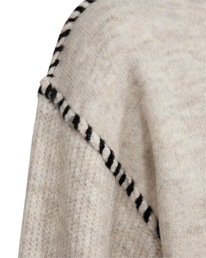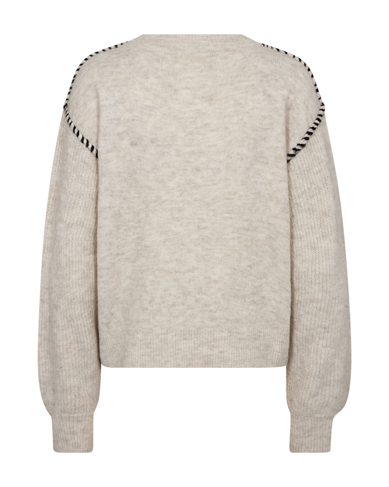 Pullover i ett mjuk, stickat tyg. Den har en rundad halsringning, långa ballongärmar, drop shoulders, mattsömmar samt en lös passform.