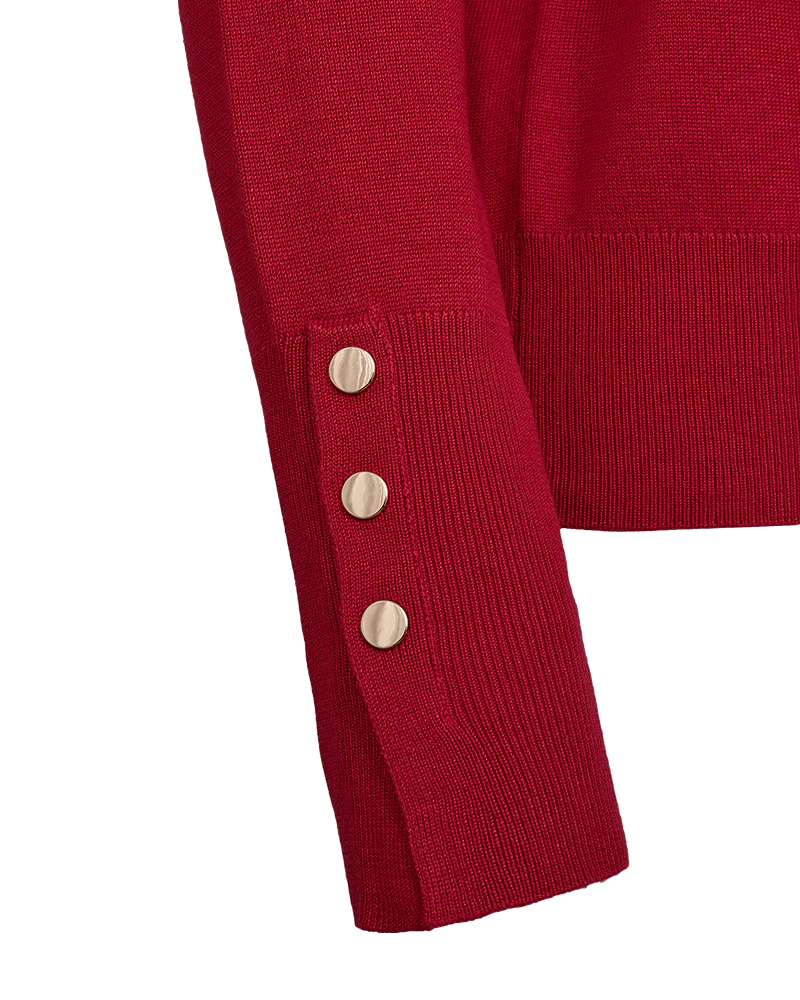 Tröja i ett mjukt, finstickat material. Tröjan har en enkel silhuett med polotröja, ribbstickad mudd, lös passform och långa ärmar med slits och knappdetalj för en fin touch.