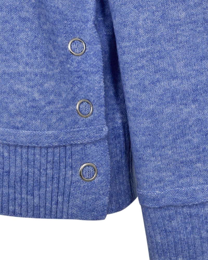 Tröja i ett mjukt, finstickat material. Tröjan har en enkel silhuett med en avslappnad passform, polotröja, vida, långa ärmar, ribbstickning samt knappdetaljer i sidsömmen. Detaljer som kombineras för en avslappnad look.