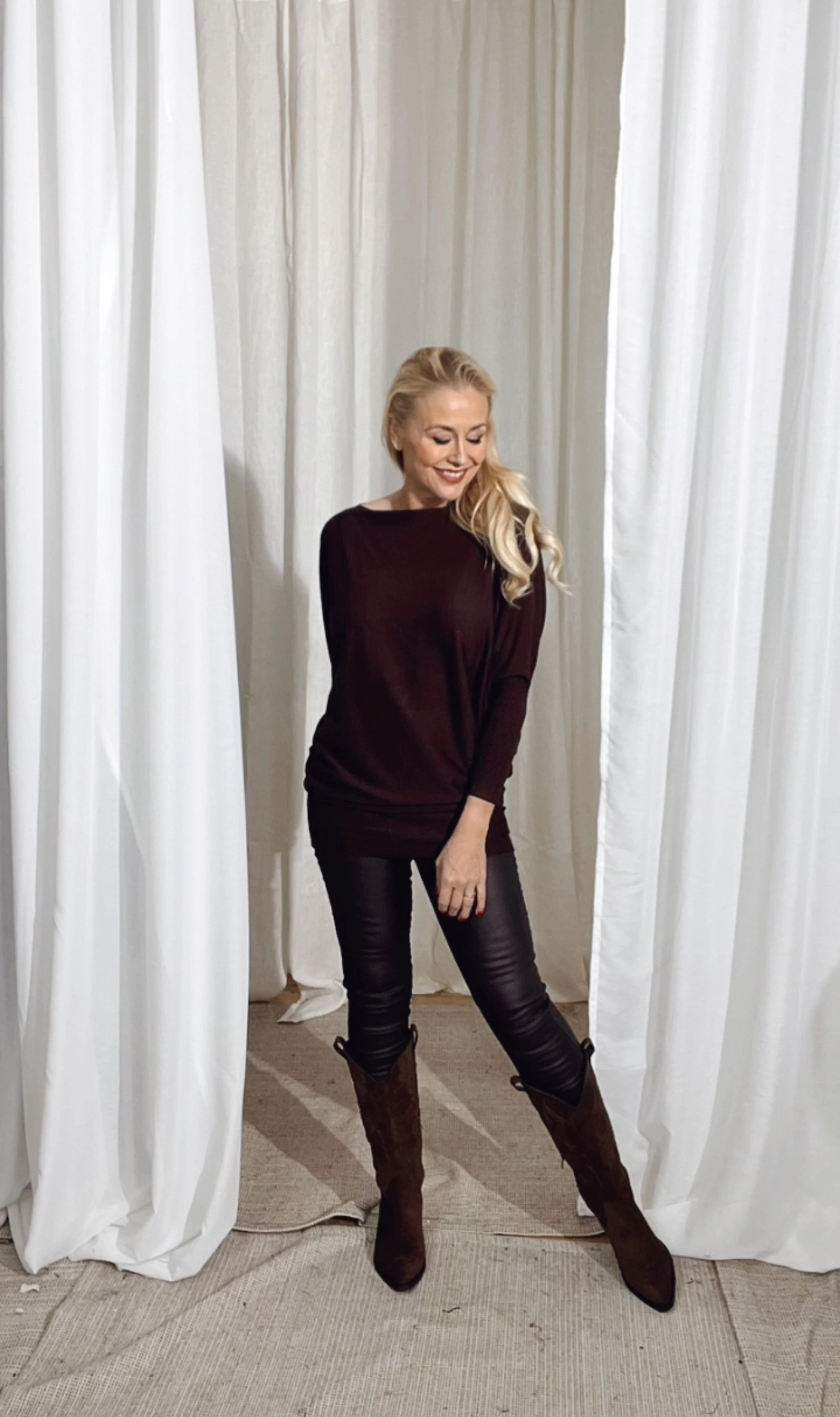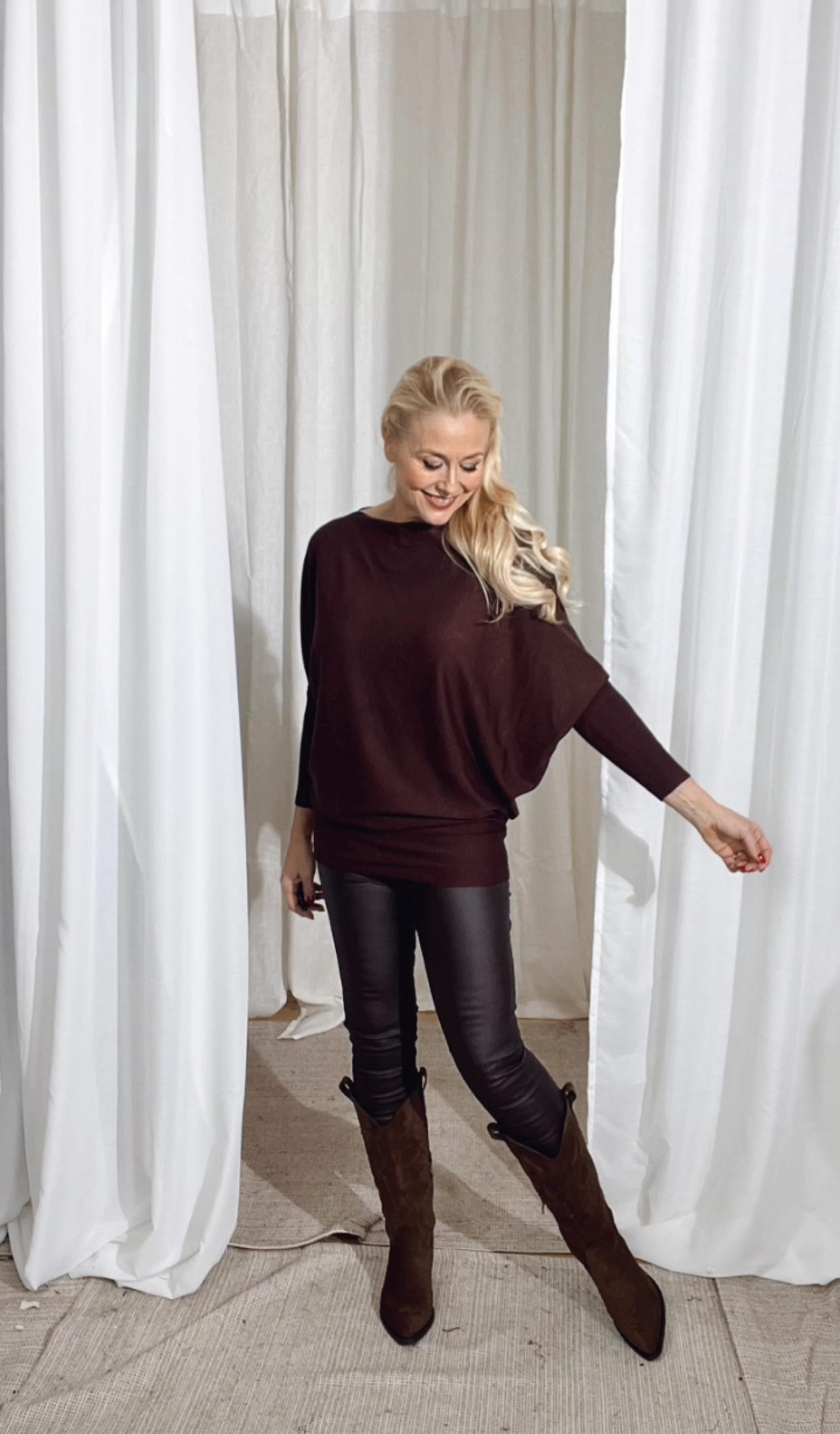 Tröja i ett finstickat material. Tröjan har en enkel silhuett med lös passform,båtringning, långa ärmar och ribbstickad mudd.
