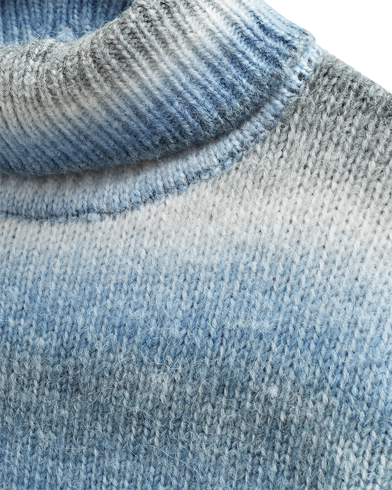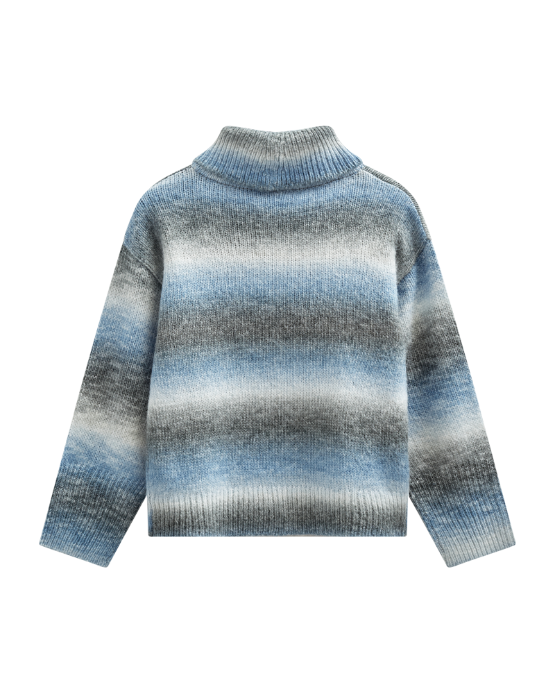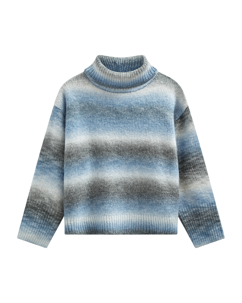 Tröja i ett mjukt, stickat material. Tröjan har en enkel silhuett med polotröja, ribbstickad mudd och långa ärmar med nedsänkta axlar som framhäver den lösa passformen.