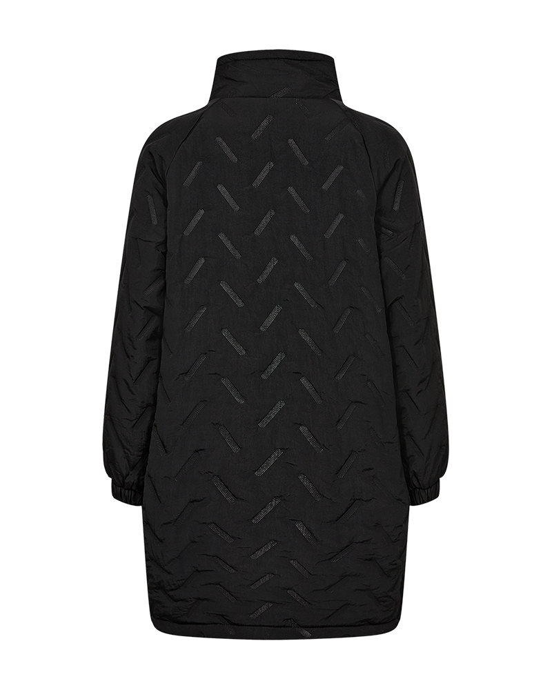 En vadderad jacka i ett mjukt material med härligt mönster. Jackan har en enkel siluett med dragkedja, sidfickor, hög krage, lös passform med långa ärmar med resår i nedkant.