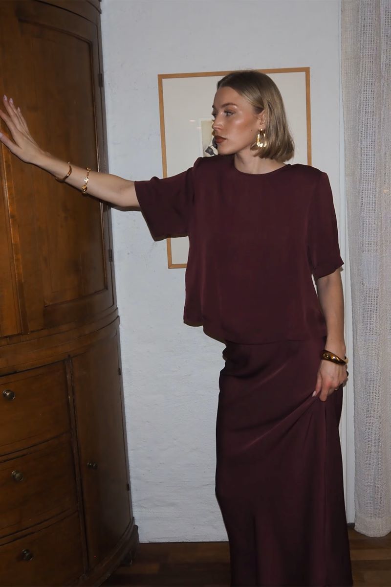 Leonie Satin Tee är en lyxig t-shirt tillverkad av FSC-viskos med en slät satinfinish, som erbjuder elegans och komfort i en tidlös design.
