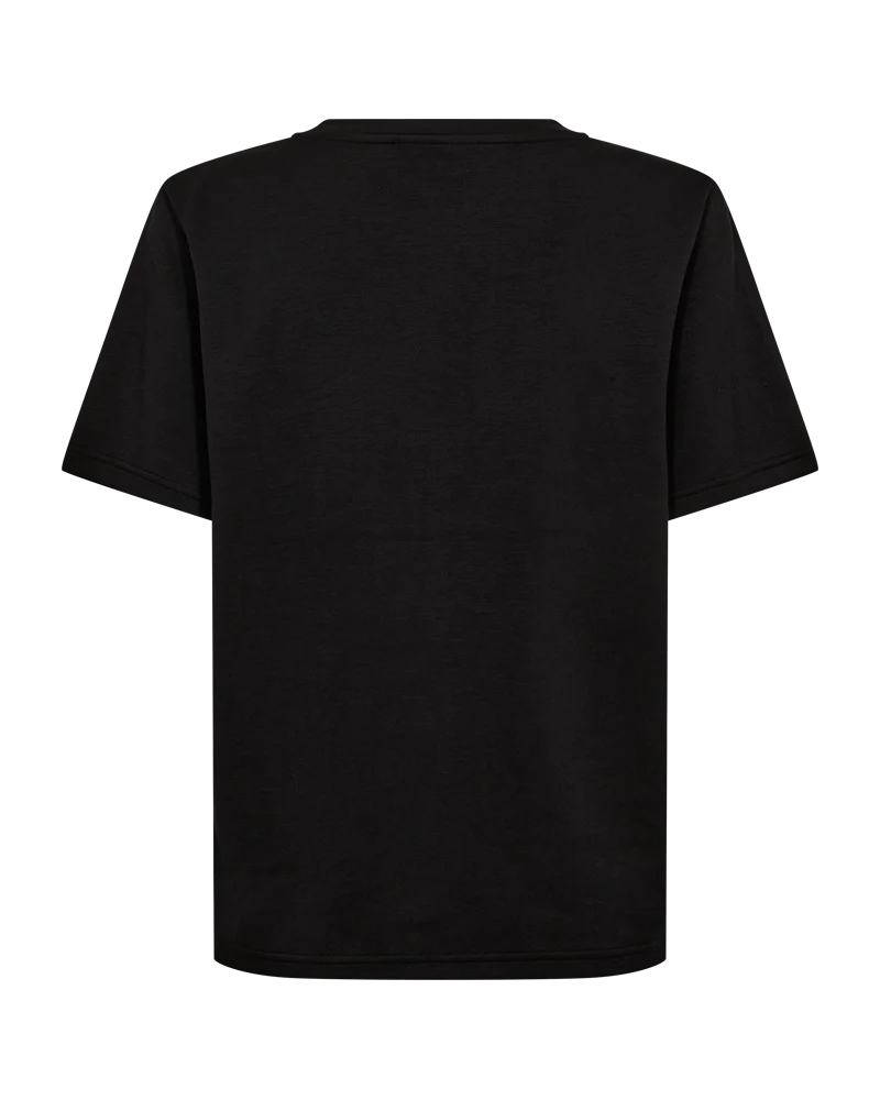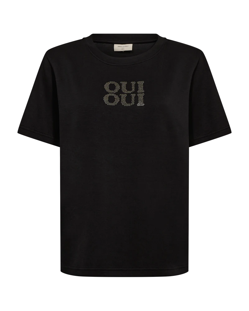 T-shirt i det mjukaste materialet, har en enkel silhuett med en avslappnad passform, rundad halsringning med ribbstickning, korta ärmar och fixerade strasstenar framtill för en snygg look.