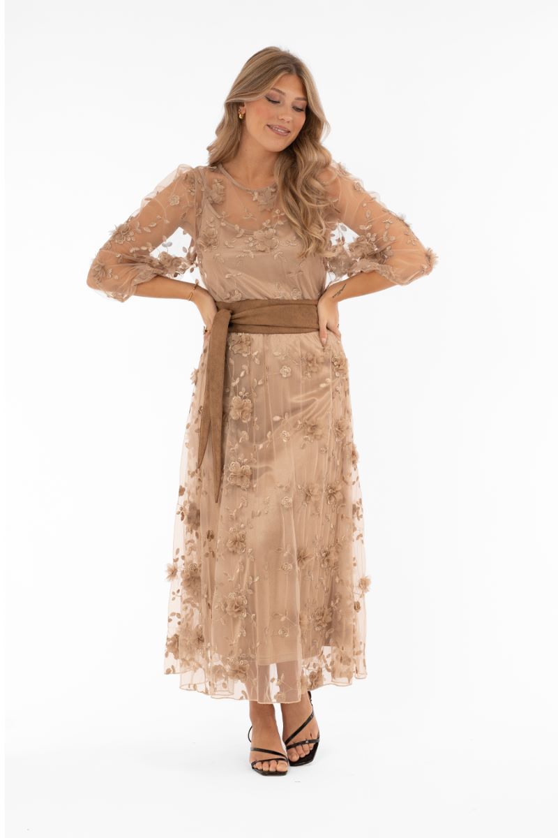 En riktig rock-romantisk dröm! Florence Blus är tillverkad i vackert broderat meshtyg och dekorerad med söta utanpåliggande blommor som är noggrant placerade över hela blusen. Blusen har en ledig passform och ett satinband i nacken som kan knytas som stilfull detalj. De 3/4-dels långa puffärmarna ger extra volym och avslutas med ett mjukt resårband som skapar en feminin och följsam passform. det medföljer ett trikålinne med smala axelband, i matchande färg.