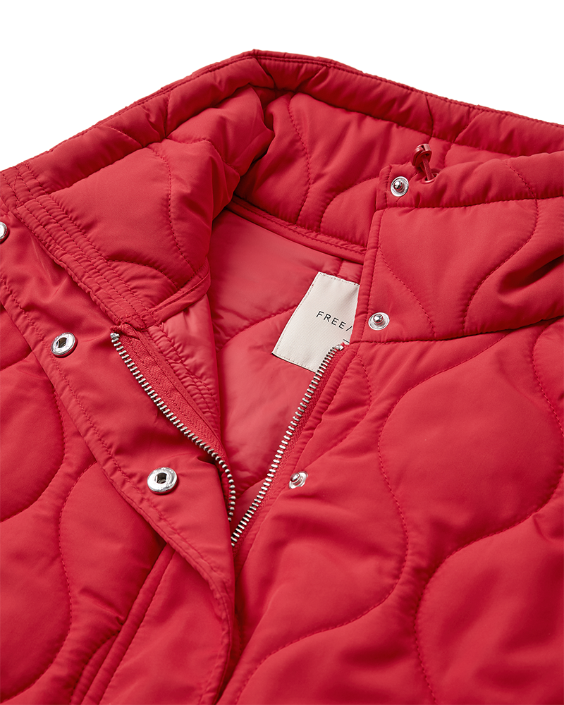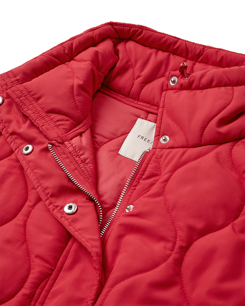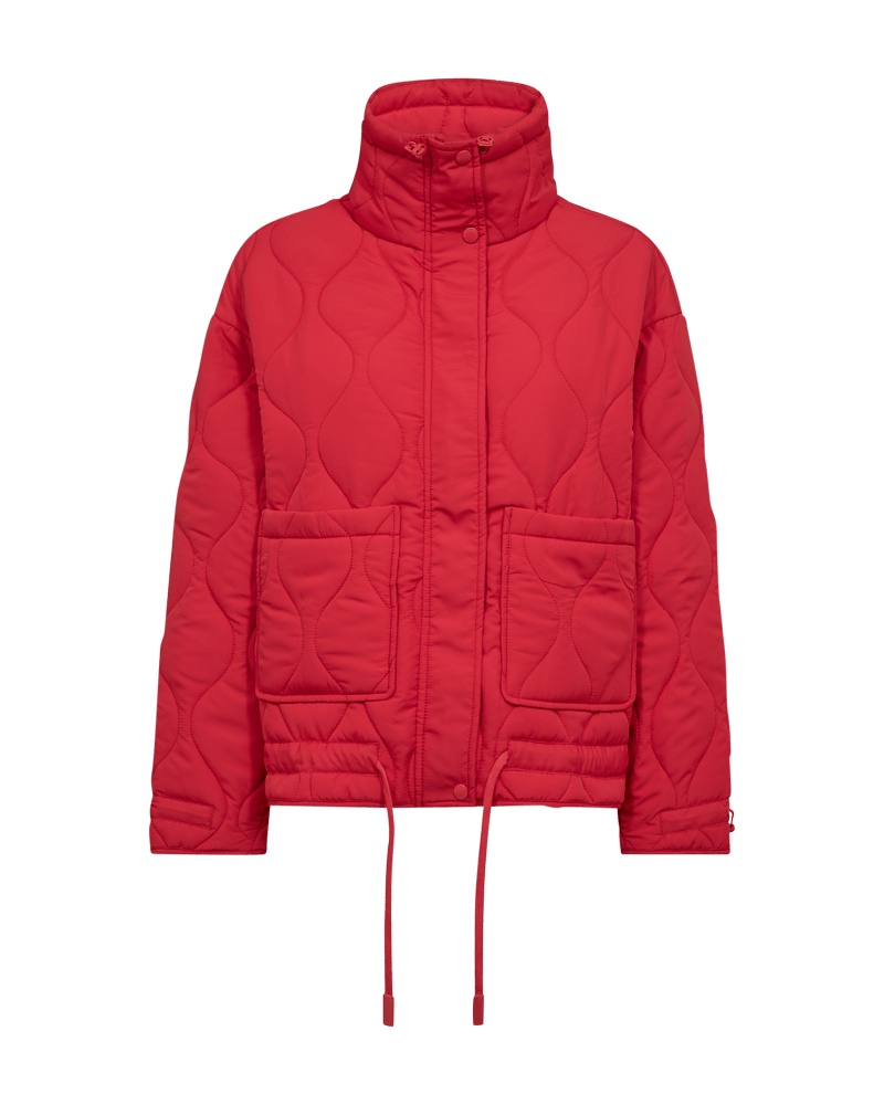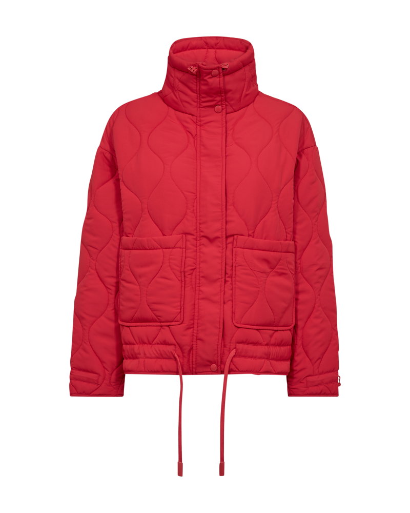 Vaddjacka i ett mjukt material med elegant mönster. Jackan har en enkel siluett med långa ärmar, dragkedja och tryckknapp, fickor fram, avslappnad passform och dragsko i nederkant