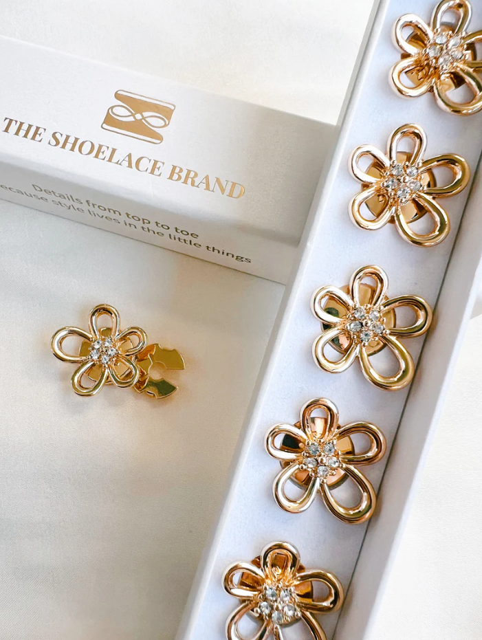 Knappsmycke – Tina – Open Gold Flower Crystal Button Charm Gold – 6 pack