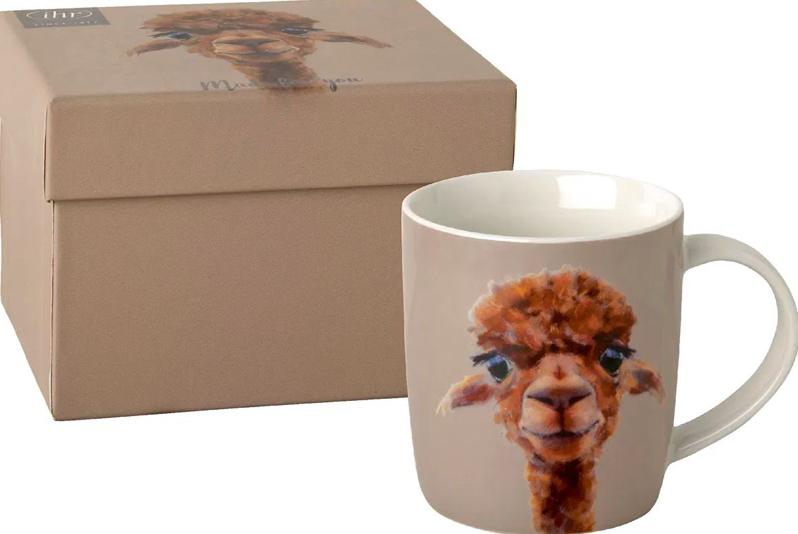 En charmig mugg med motiv av en söt alpacka. Den detaljrika illustrationen ger en varm och personlig känsla.