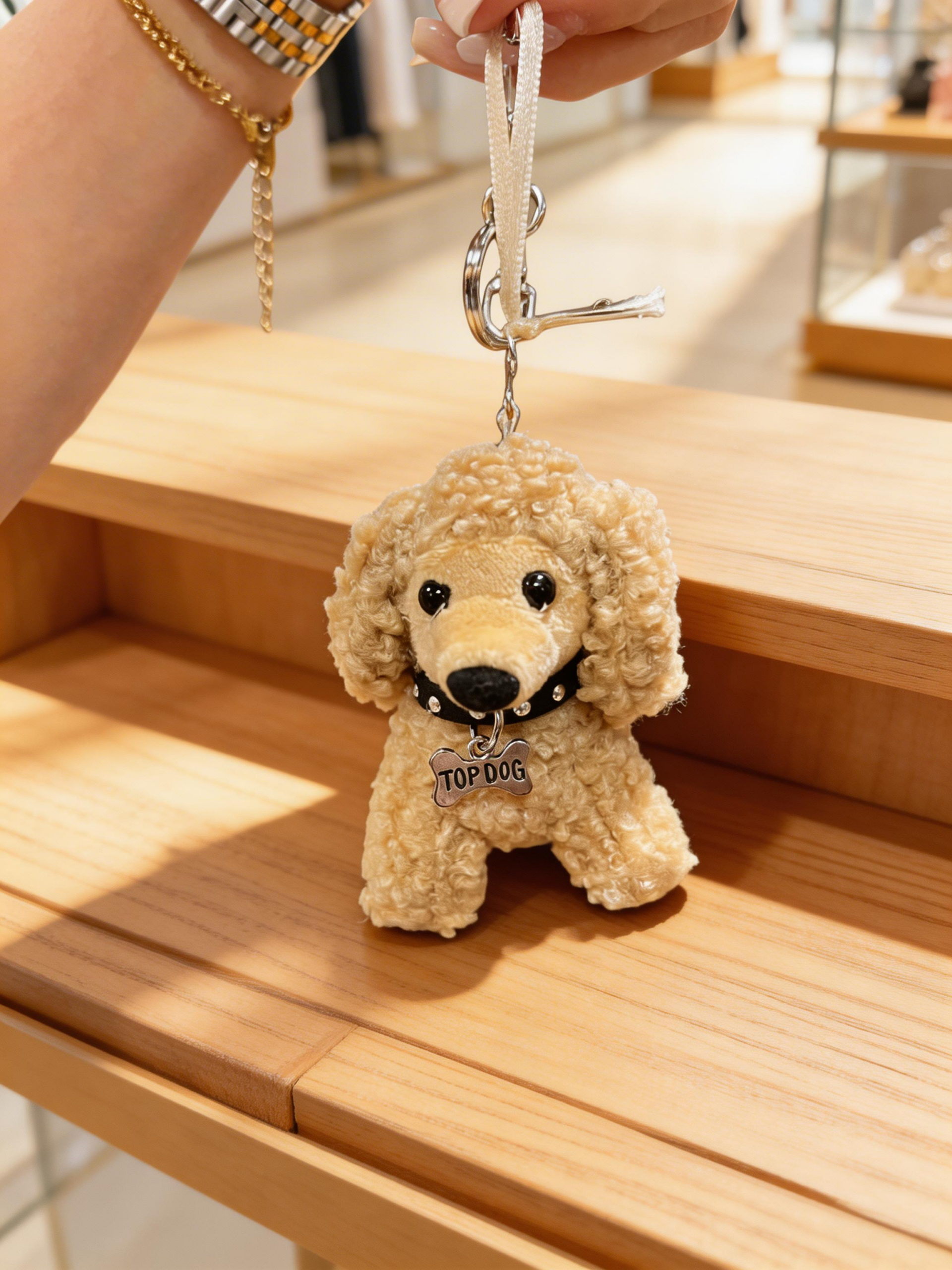 En söt och stilfull nyckelring i form av en fluffig hund med charmig “Top Dog”-bricka. Perfekt att fästa på nycklar, väskan eller ryggsäcken för en personlig touch. Mjuk design, fina detaljer och praktisk metallring med karbinhake – en liten accessoar som gör stor skillnad.