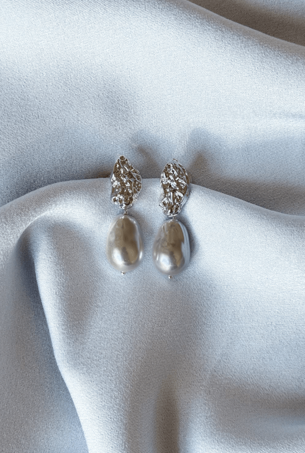 Emme örhängen har silverpläterad elegans med delikata hängande pärlor. Passar perfekt för sommartillfällen, både dag och natt.