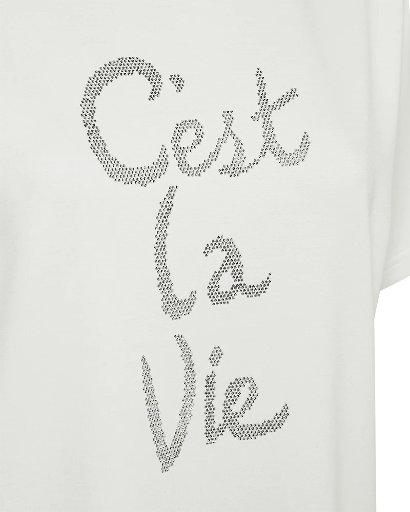 T-shirt i det mjukaste materialet, har en enkel silhuett med en avslappnad passform, rundad halsringning med ribbstickning, korta ärmar och fixerade strasstenar framtill för en snygg look.