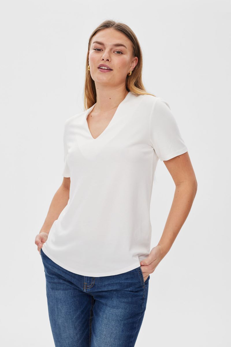 T-shirt i ett mjukt material med en enkel siluett. Med V-ringning, korta ärmar och en elegant, avslappnad passform.