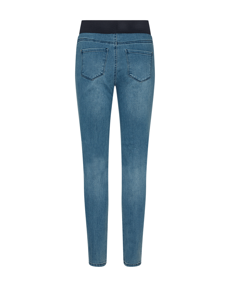 Byxor från Freequent i en mjuk och stretchig denimblandning. Byxorna är enkla i sin design med en tight passform, ett resår i midjan, bakfickor samt framfickor. Ett par avslappnade jeansbyxor i en härlig kvalitet. Normal, vi rekommenderar att du går ner en storlek storlek.